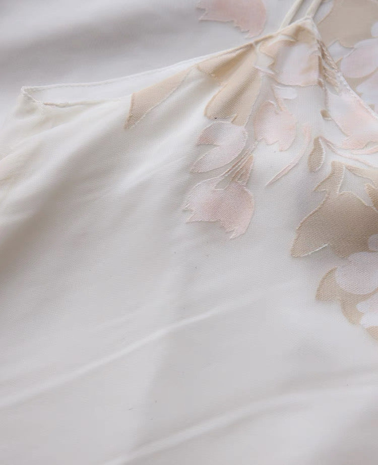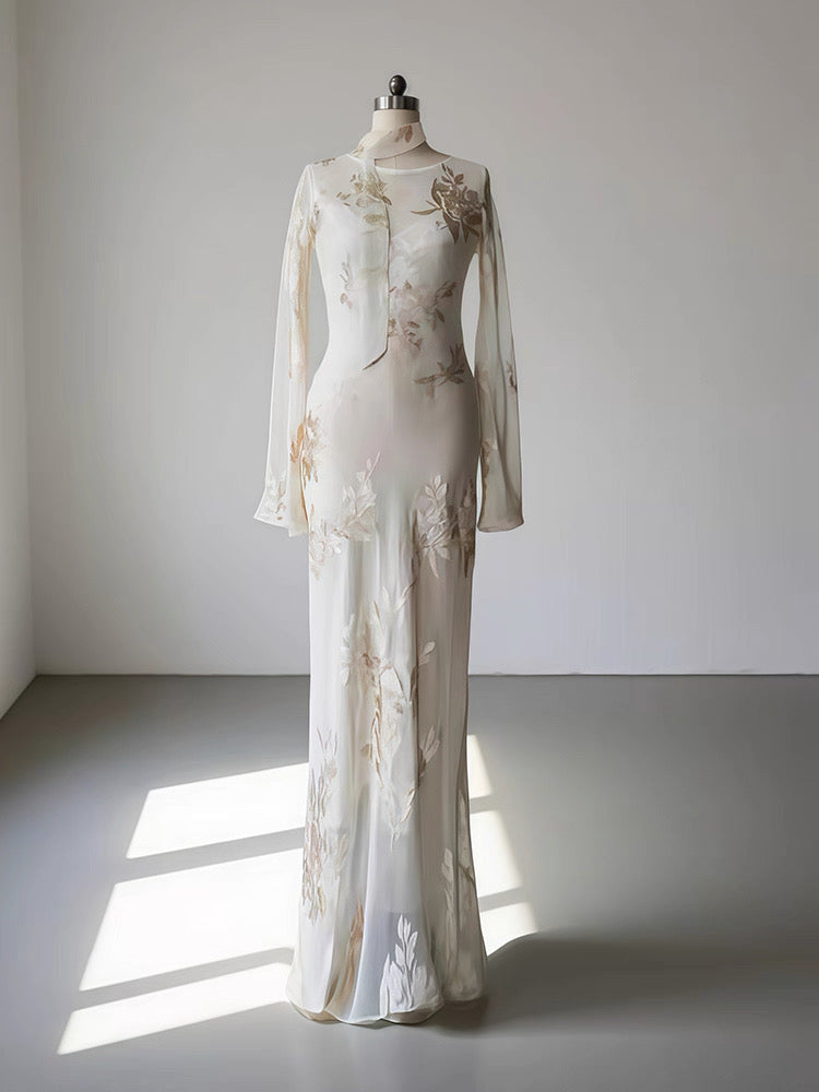 Red Dune Blush Nude Double-Layer Mulberry Silk Long Sleeve Maxi Dress