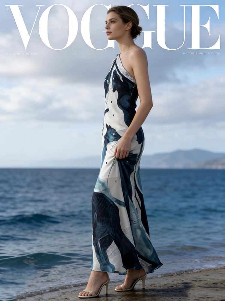The dress is crafted using bias-cut tailoring, a technique that allows the fabric to drape fluidly and sculpt the body’s natural lines. Cut along a 45° angle, the fabric gains natural elasticity, creating a close yet comfortable fit that moves beautifully with the wearer.